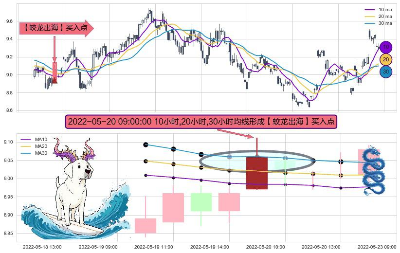 ⚀ 2022-05-20 09:00:00小时显现 10小时-20小时-30小时均线 【蛟龙出海】买入点 看多信号,后市看涨,买入