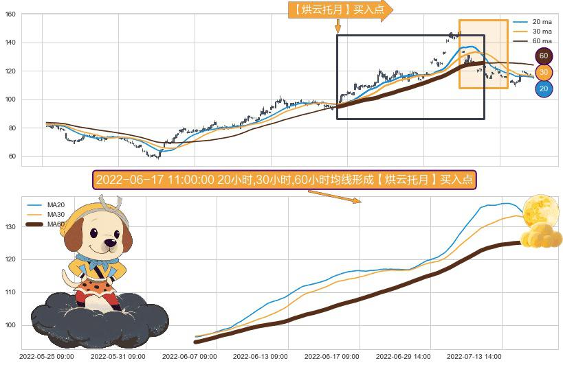 ⚀ 2022-06-02 14:00:00小时-2022-07-20 13:00:00小时显现 20小时-30小时-60小时均线 【烘云托月】买入点 看多信号,后市看涨,买入