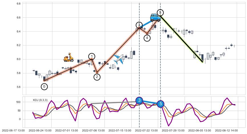从2022-05-31 10:00至2022-06-06 09:00,共包含15个小时,阶段股价上涨0.70%,阶段股价变动位移路程比: 1 : 8
