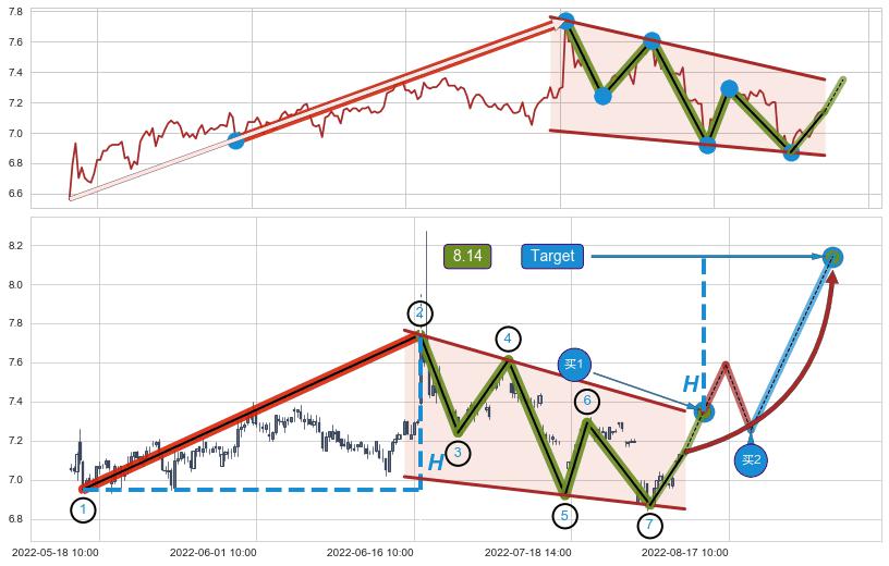 ➣ 最小中继整理涨幅→𝐇: 0.7900 (𝐇旗杆的长度:旗杆起点→顶点)