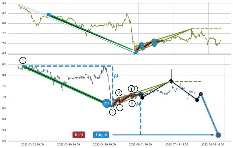 ➢ 【仅预测突破】最后价格:7.14与预测突破价格:7.35→【空间临近】后续最小【整理】第一目标价格→(08-24:13: 8.14 )