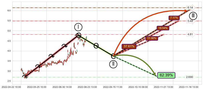 ♘ 阻力价格位4.77,可信任强度55.62%,距离最后交易2022-08-12 14:00形成的收盘价格4.57相差 +4.38%