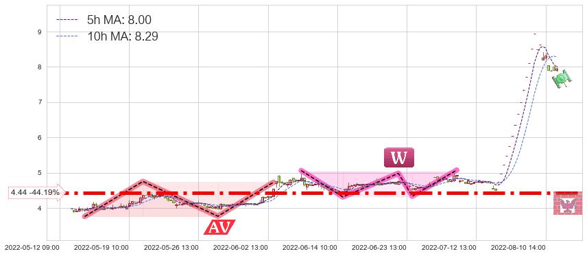♘ 支撑价格位4.44,可信任强度97.24%,距离最后交易2022-08-12 14:00形成的收盘价格7.95相差 -44.19%