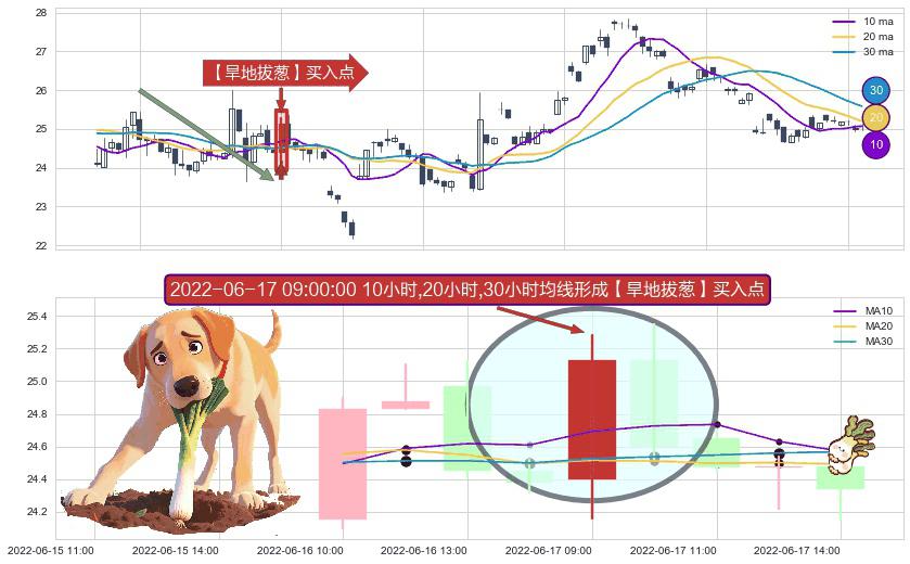 ⚀ 2022-06-17 09:00:00小时显现 10小时-20小时-30小时均线 【旱地拔葱】买入点 看多信号,后市看涨,买入