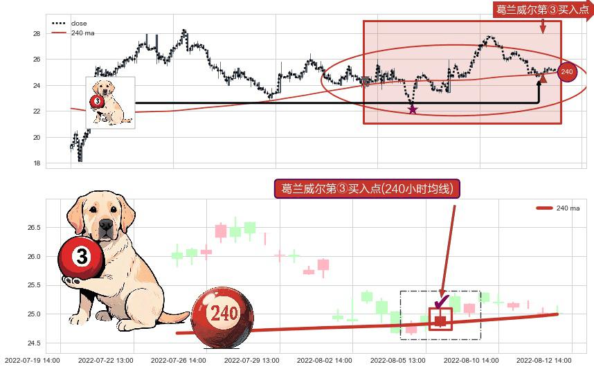 ⚀ 2022-08-05 14:00:00-小时显现 葛兰威尔均线 240小时均线 第③买入点 上升趋势的中继信号,后市看涨,买进信号