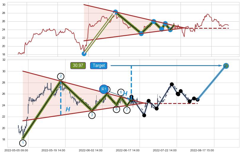 ➢ AI预测: 假定反转继续,第❸价格目标位置(08-19:11, 22.24)