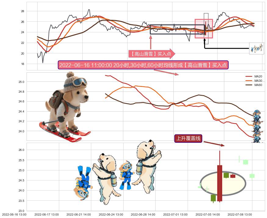 | 2 🅚:双针探底 ➕ 🎢:【高山滑雪】买入点均线组合买入点信号形成后,猜想后续下行结束,持续反弹上涨(均值回复) ☞ 看多信号 ⇥ 【均线】交织【🅚线】⇥ 综合量化分数: 52 | > |
