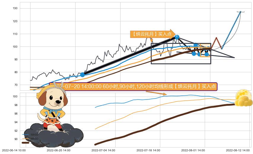 | 4 🅚:【烘云托月】买入点 ➕ 🌊:波浪理论上涨5浪延续:猜想C点强支撑小回调终止,猜想保持上涨5浪方向拉升(均值回复后大周期继续趋势跟踪) ☞ 看多信号 ⇥ 【均线】交织【图形】⇥ 综合量化分数: 82 | > |