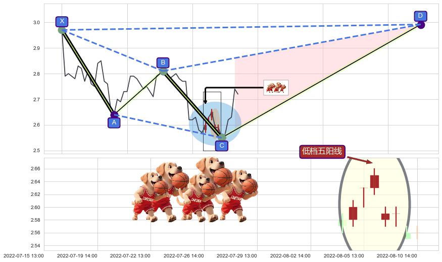 ➣ 未完成【鲨鱼】形态起点X: 07-05:14, 已到达C点: 08-10:13, 预测最终D点: 08-26:10, 共110交易小时