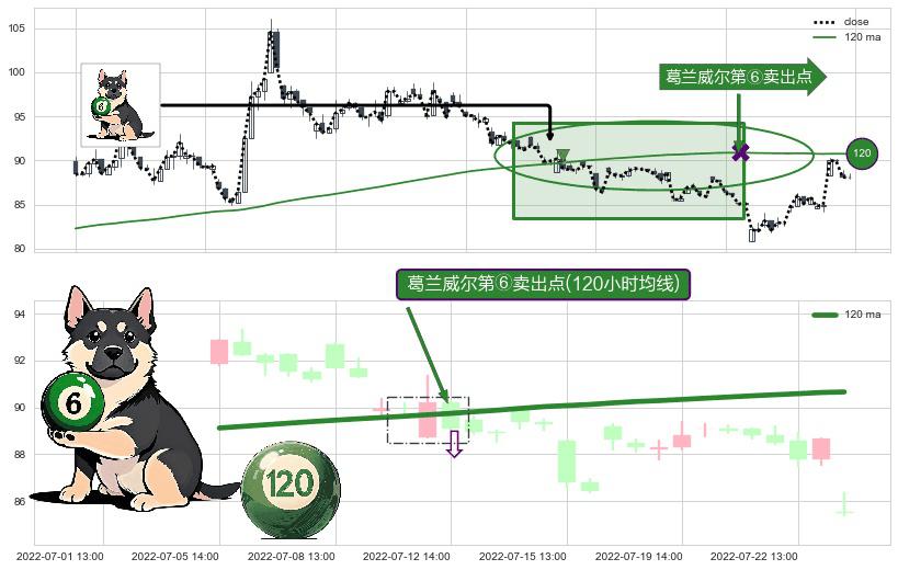⚀ 2022-07-12 14:00:00-小时显现 葛兰威尔均线 120小时均线 第⑥卖出点 走势反转见顶信号,后市看跌,卖出信号