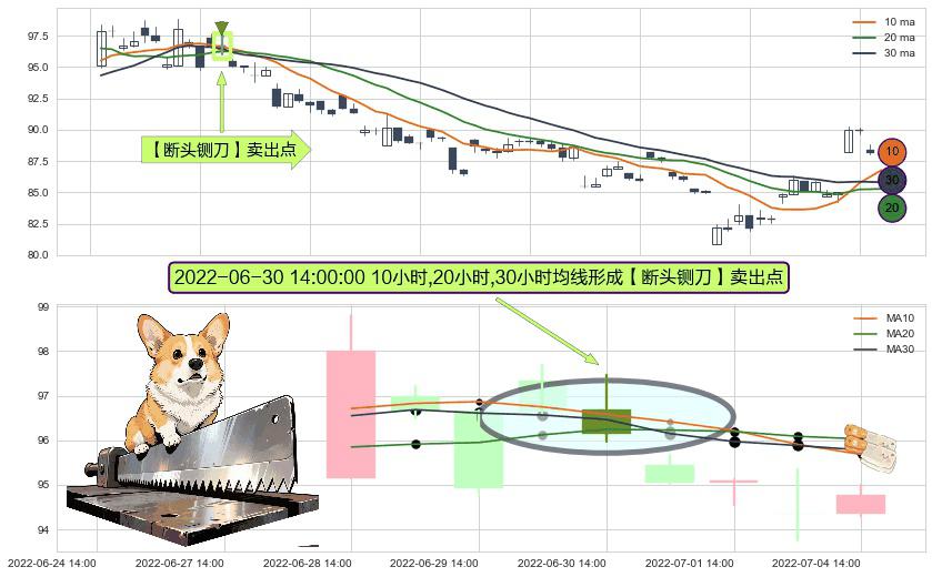 ⚀ 2022-06-30 14:00:00小时显现 10小时-20小时-30小时均线 【断头铡刀】卖出点 看空信号,后市看跌,卖出