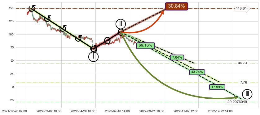 ➣ D点拟合预测价格140.98,距离最后交易收盘价格88.07相差 +60.08%