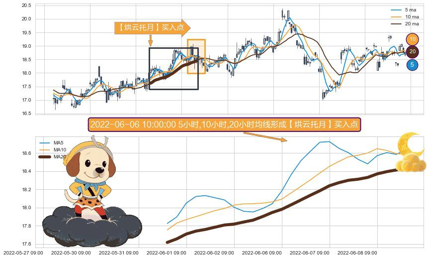 ⚀ 2022-05-31 13:00:00小时-2022-06-08 13:00:00小时显现 5小时-10小时-20小时均线 【烘云托月】买入点 看多信号,后市看涨,买入