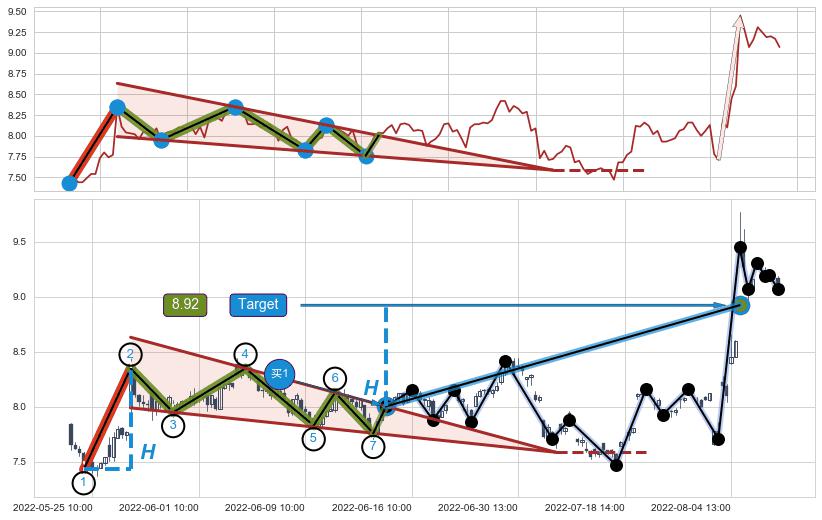 ➢ 【买1】: 激进型 买点 →(06-15:09: 8.00 )形成突破降🚩楔型【整理】形态