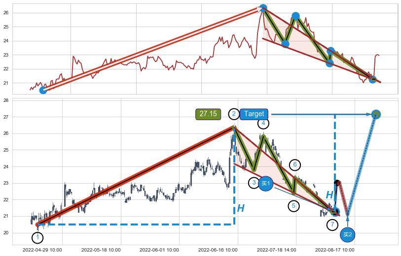 ➢ 最小中继整理涨幅→𝐇: 5.88 (𝐇楔型旗杆的长度:楔型起点→顶点)