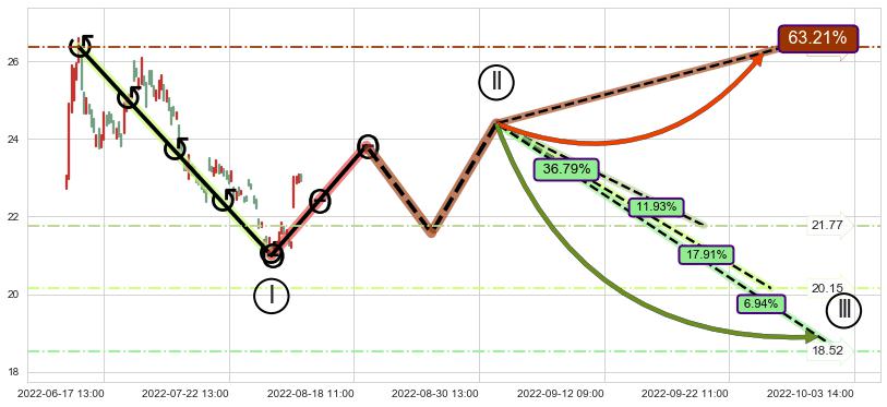 ➢ 循环浪继续向下【最高】位置(09-20:13, 21.77),匹配聚类样本比例32.43%, 可能性概率11.93%