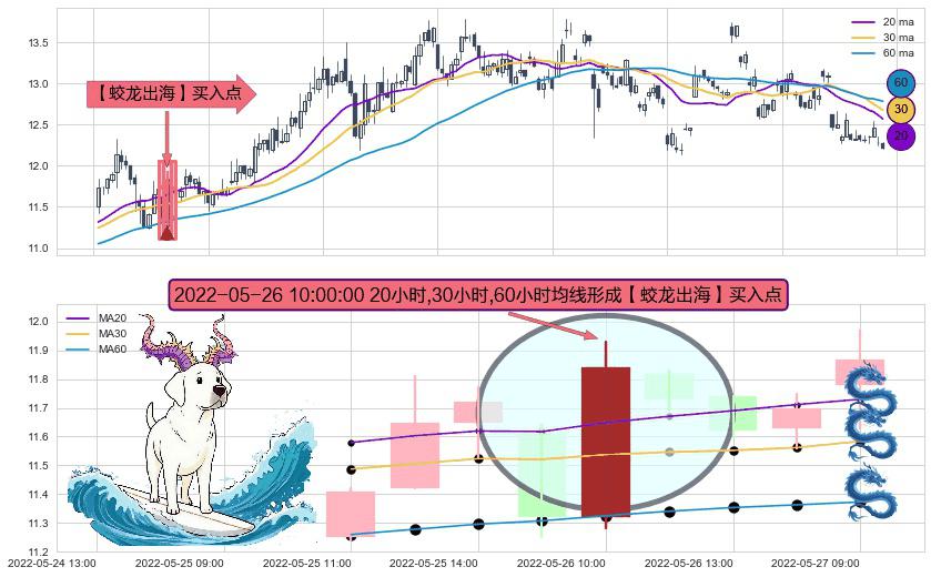 形态多维评估: ⚀ 2022-05-26 10:00:00小时显现 20小时-30小时-60小时均线 【蛟龙出海】买入点 看多信号,后市看涨,买入