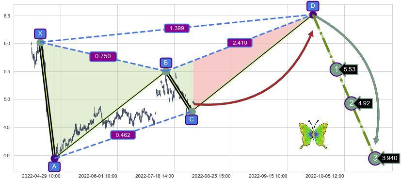 ➢ 距离预测D点位置有足够的上涨空间, 与看跌【蝴蝶】形态相反,实际方向【看涨】