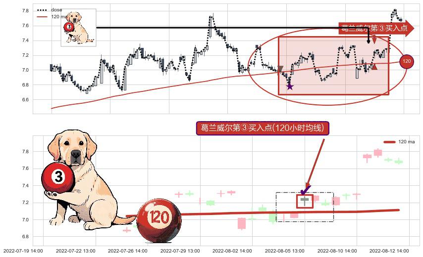 ⚀ 2022-08-05 13:00:00-小时显现 葛兰威尔均线 120小时均线 第③买入点 上升趋势的中继信号,后市看涨,买进信号