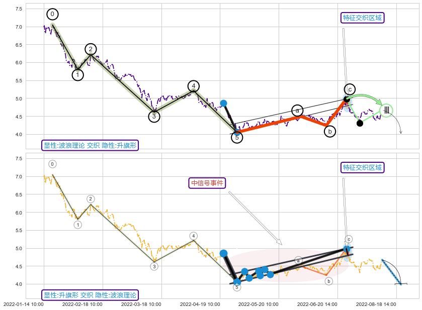 ➢ 升旗形支撑破位转换阻力下跌 🔜 波浪理论c点反弹终止反转下跌 综合量化分数:35.22 【强烈看空】