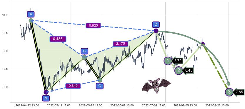 ➣ 已完成【蝙蝠】形态起点X: 04-20:09, 终点D: 06-21:14, 共199交易小时