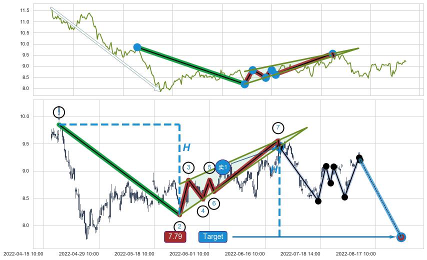 ➢ AI预测: 假定反转继续,第❸价格目标位置(08-23:14, 7.85)