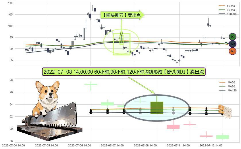 ⚀ 2022-07-08 14:00:00小时显现 60小时-90小时-120小时均线 【断头铡刀】卖出点 看空信号,后市看跌,卖出