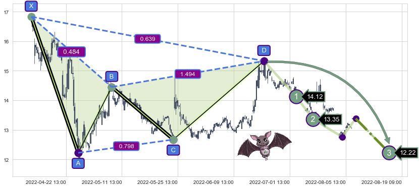 ➣ 已完成【蝙蝠】形态起点X: 04-14:11, 终点D: 06-17:09, 共209交易小时