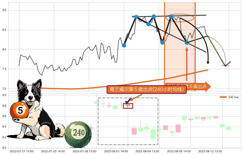 ➢ 收盘价(08-12:14: 8.34 )→回踩→第一根k线高点(08-05:14: 8.44 )