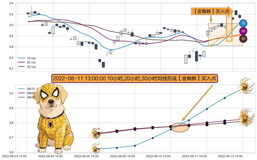 ⚀ 2022-08-11 13:00:00小时显现 10小时-20小时-30小时均线 【金蜘蛛】买入点 看多信号,后市看涨,买入