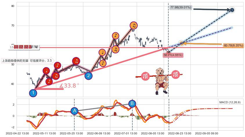 ➢ 【仅预测突破】最后价格:56.10与预测突破价格:60.04→【空间较大】后续最小【整理】第一目标价格→(08-30:09: 83.14 )