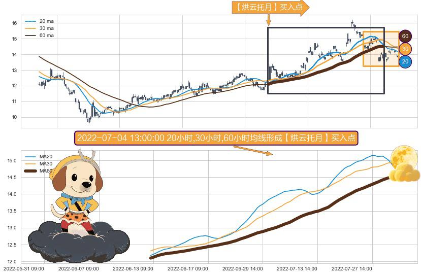 形态多维评估: ⚀ 2022-06-10 14:00:00小时-2022-08-03 14:00:00小时显现 20小时-30小时-60小时均线 【烘云托月】买入点 看多信号,后市看涨,买入