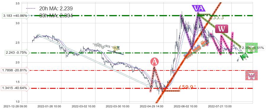 ♘ 阻力价格位2.243,可信任强度63.91%,距离最后交易2022-08-12 14:00形成的收盘价格2.260相差 -0.75%