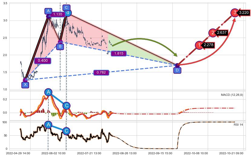 ➣ D点拟合预测价格1.6951,距离最后交易收盘价格2.260相差 -25.00%