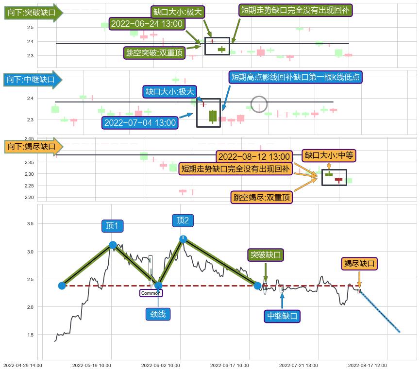 ➢ 2022-08-12 13:00形成:向下跳空【竭尽】缺口