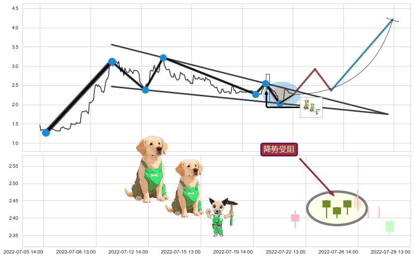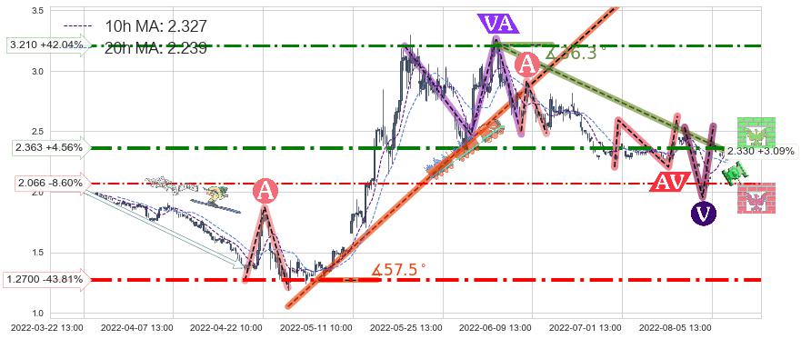 ♘ 阻力价格位2.363,可信任强度78.17%,距离最后交易2022-08-12 14:00形成的收盘价格2.260相差 +4.56%