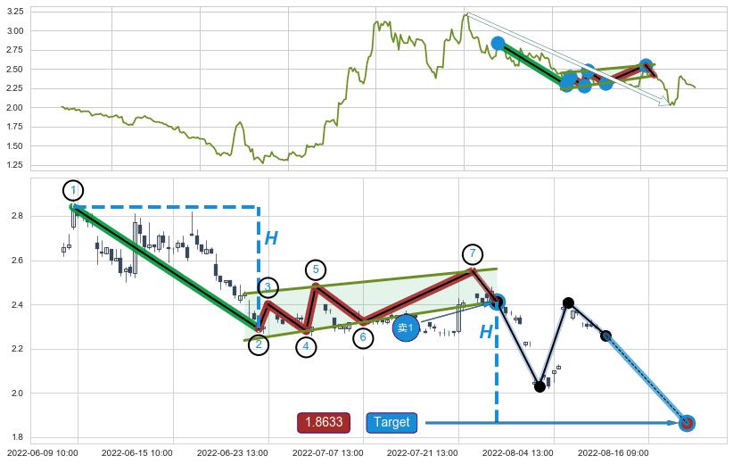 ➣ 最小中继整理跌幅→𝐇: 0.5500 (𝐇旗杆的长度:旗杆起点→顶点)