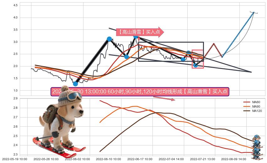 ♘ 阻力价格位3.210,可信任强度56.57%,距离最后交易2022-08-12 14:00形成的收盘价格2.260相差 +42.04%