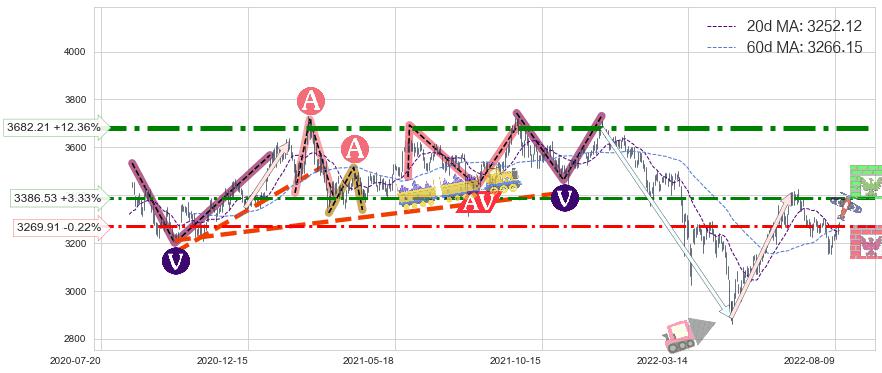➢ 【仅预测突破】最后价格:3277.24与预测突破价格:3517.11→【空间中等】后续最小【反转】第一目标价格→(2022-10-31: 3945.55 )