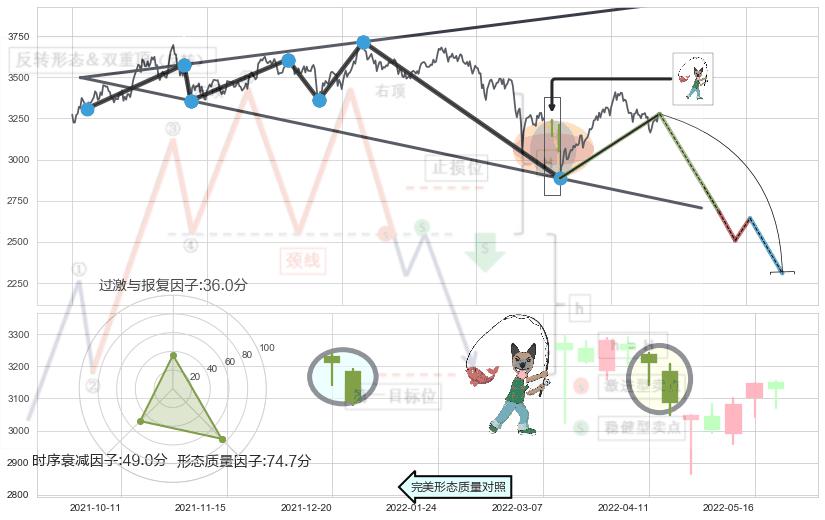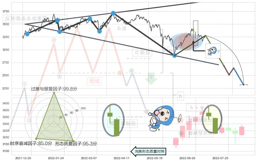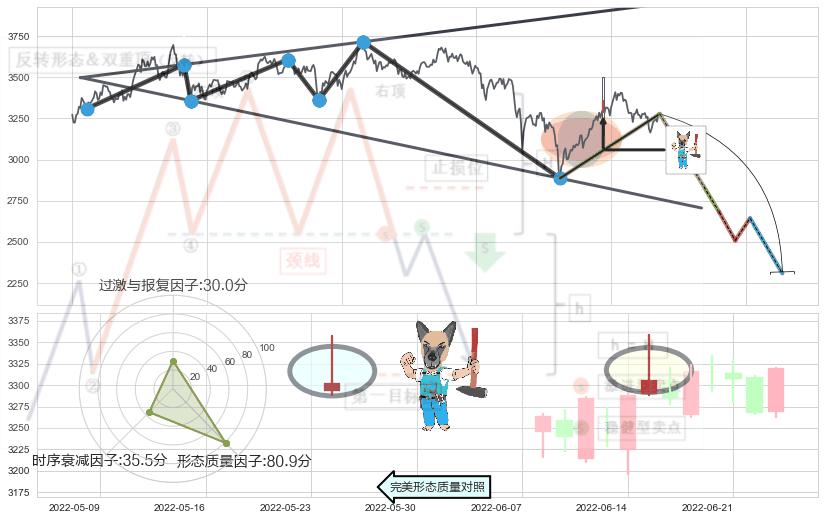 ➢ 下跌螺旋桨 + 扩散三角反转临近支撑猜想转换阻力下跌信号叠加后【反向回撤率】中等,【看空】信号叠加【存续影响中等】