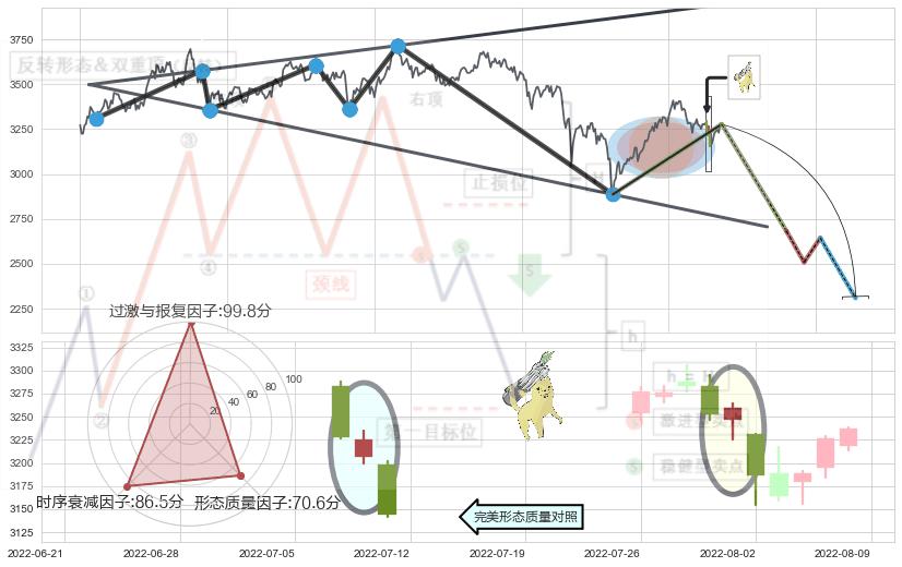 ➢ 🕰 价格走势在2022-07-29至2022-08-02期间形成空方炮,残存影响值:-1.79
