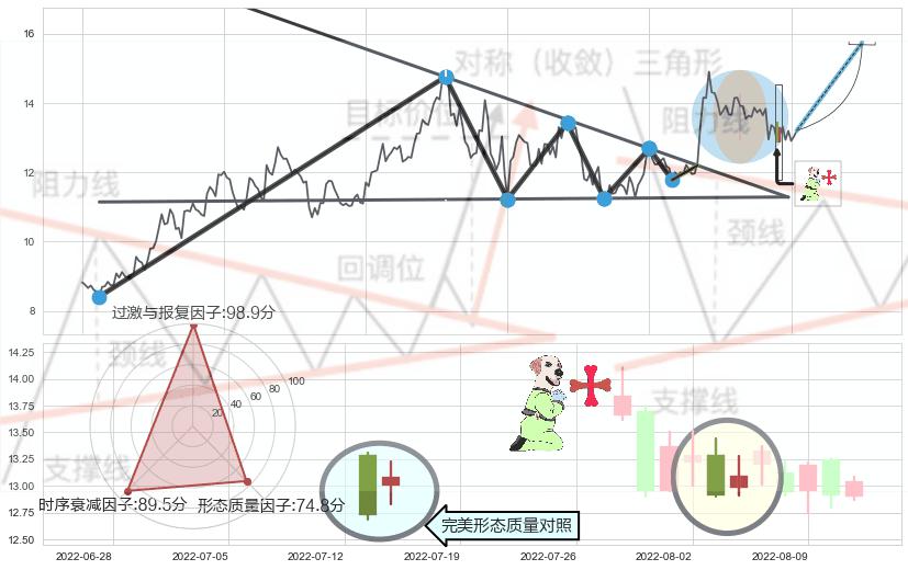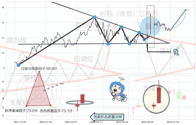 ➢ 曙光初现形态 🔜 上升对称三角整理阻力突破转换支撑上涨 综合量化分数:54.04 【偏多】