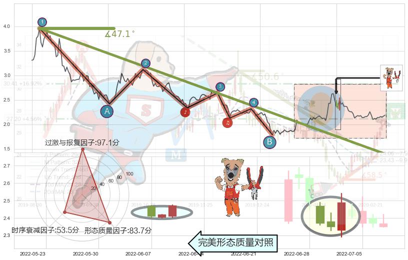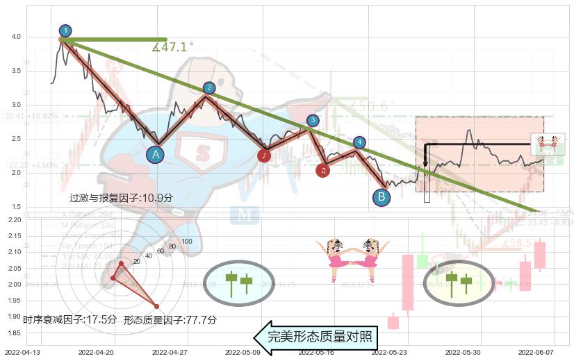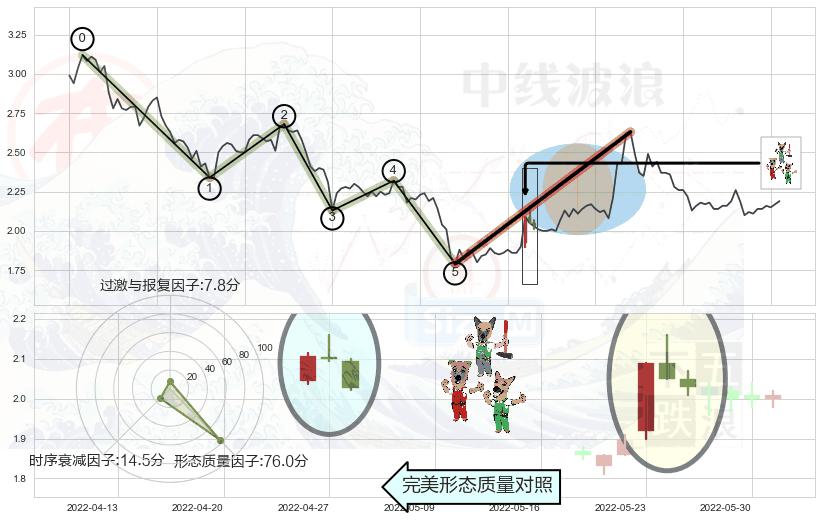 ➢ 🕰 价格走势在2022-05-09至2022-05-16期间形成顶部尽头线(下山虎),残存影响值:-2.31