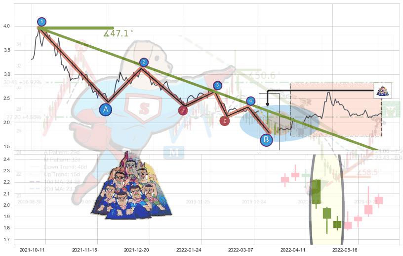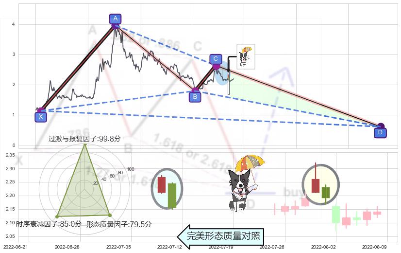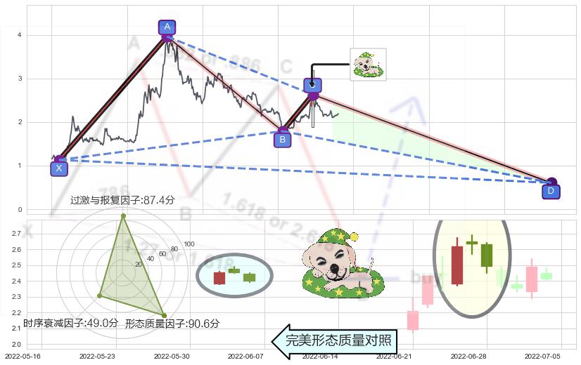 ➣ D点拟合预测价格0.6056,距离最后交易收盘价格2.190相差 -72.35%