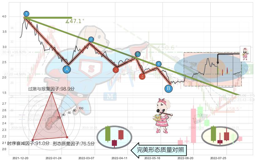 从2021-09-02至2022-06-24,共包含193个交易日,阶段股价下跌-31.63%,阶段股价变动位移路程比: 1 : 14,下跌趋势角度: 47.1