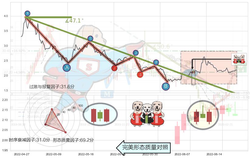 ➢ 🕰 价格走势在2022-06-16至2022-06-16期间形成仙人指路,残存影响值:2.47