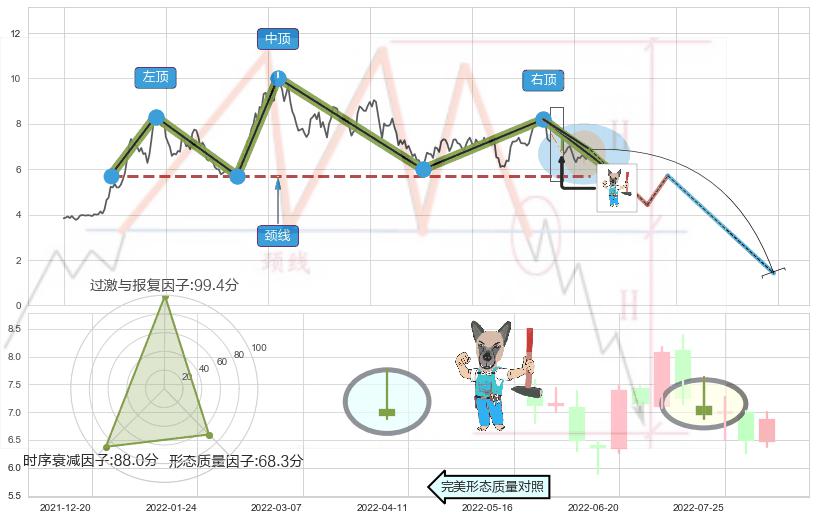 ♘ 支撑价格位6.26,可信任强度87.84%,距离最后交易2022-08-12形成的收盘价格6.87相差 -8.91%