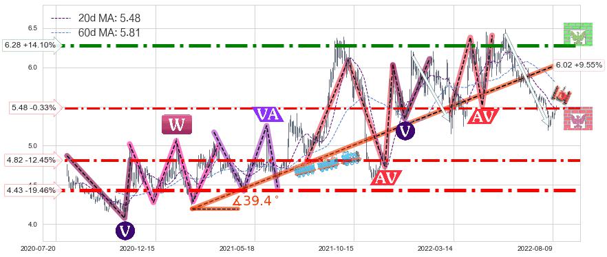 ♞ 20日均线:5.48,60日均线:5.81→ 快线<慢线