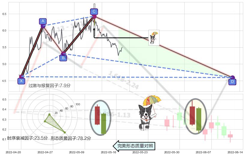 ➣ 未完成【鲨鱼】形态起点X: 2021-11-12, 已到达C点: 2022-06-01, 预测最终D点: 2023-05-19, 共377交易日