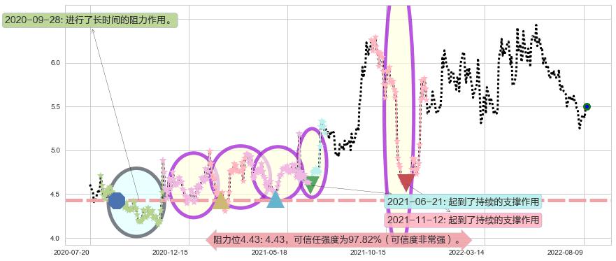 ♘ 支撑价格位4.43,可信任强度97.82%,距离最后交易2022-08-12形成的收盘价格5.50相差 -19.46%